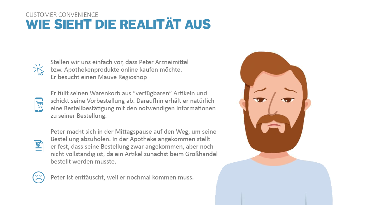 Mit der „An-alles-gedacht-Lösung“ von Mauve ist Ihre Apotheke blitzschnell im Netz. Steigern Sie Ihren Offizin-Umsatz in der digitalen Welt und senken Ihre Transaktionskosten in der Apotheke durch den automatischen Bestands.- und Preisabgleich. Parallel dazu werden die Aufträge direkt an Ihr Apothekensystem übermittelt. Bieten auch Sie Ihren Kunden eine echte Alternative zu den großen Onlineapotheken. Denn Sie sind viel schneller. Wo starten wir gemeinsam?