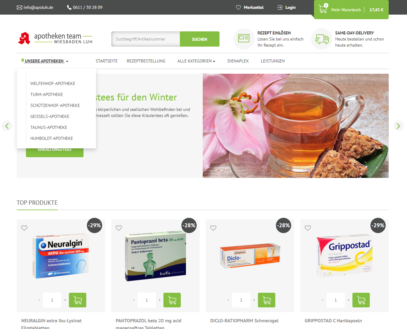 Apoluh.de – sechs Apotheken ein Mauve ApoShop-Portal – unsere Apotheken-Plattform der Woche Die Apotheken-Plattform www.apoluh.de bietet seinen Bestands- sowie potentiellen Neukunden neben wichtigen Gesundheitsinformationen natürlich die Möglichkeit, sich gleich online über Aktionen und ApoVerfügbarkeiten zu informieren. Dadurch wird nicht nur die Besucherfrequenz in der Apotheke erhöht, sondern auch die Transaktionskosten in der Apotheke reduziert, weil Verbraucher alle relevanten Informationen gleich online einsehen können. Abgerundet wird das Konzept durch einen ausgefeilten Bestellprozess. Kunden wählen während des Bestellvorgangs einfach die präferierte Apotheke aus und entscheiden, ob die Medikamente abgeholt (Click & Collect) oder sie die Medikamente per Bote (Click & Delivery) bequem nach Hause geliefert bekommen. Hinzukommt, dass insgesamt 6 Apotheken unter einer Dachmarke fungieren und somit eine bestmögliche Abdeckung in ihrem regionelen Wirkungskreis haben.