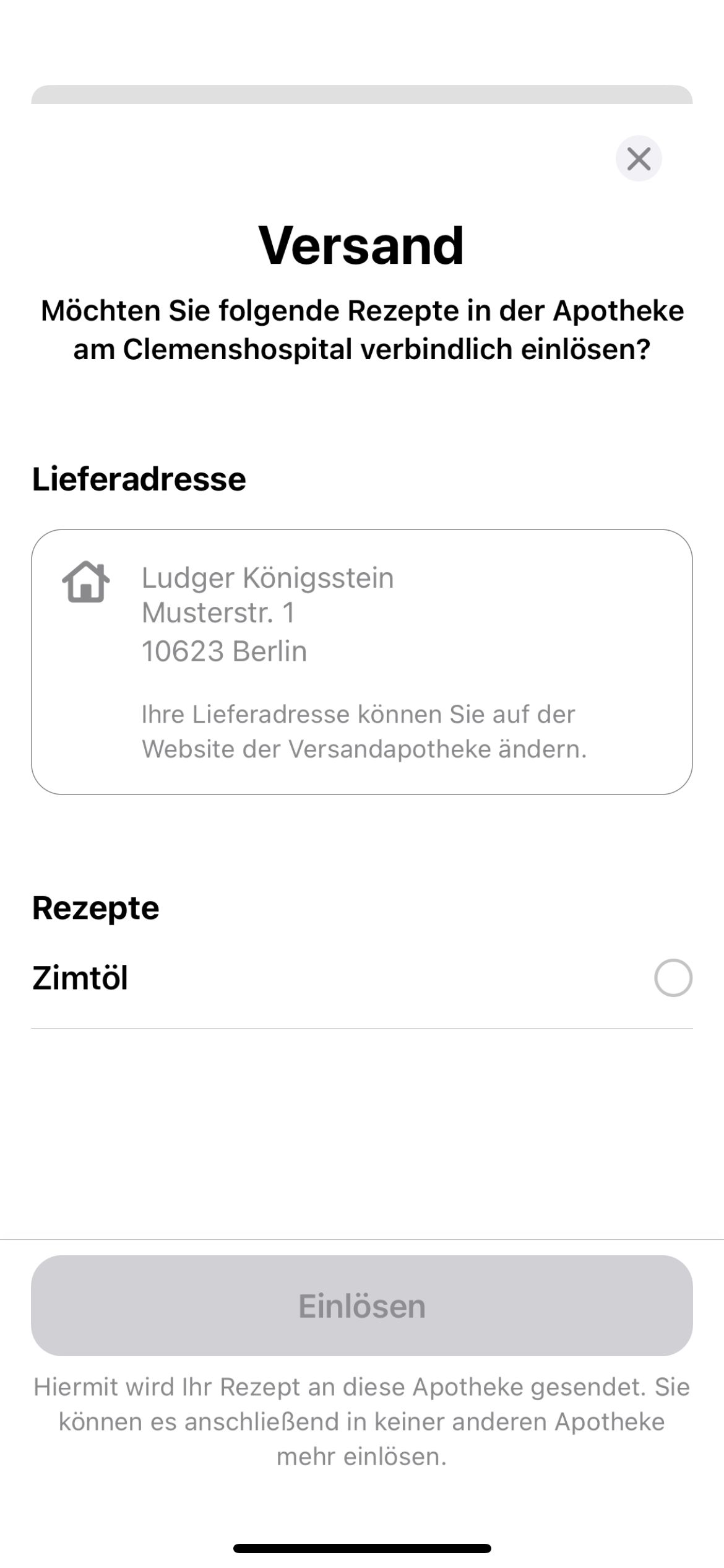 Nach einer Testphase ist der offizielle Start des E-Rezepts für das 4. Quartal 2021 vorgesehen. Dann können gesetzlich Versicherte in der App von ihrer Ärztin oder ihrem Arzt Rezepte empfangen und Informationen wie Hinweise zur Einnahme und Dosierung einsehen. Zum Einlösen eines E-Rezepts kann der Rezeptcode in der App geöffnet und in der Apotheke vorgezeigt werden. Alternativ kann der Versicherte aber auch aus der Liste aller Apotheken eine Apotheke und die Art und Weise, wie er seine Medikamente erhalten will, in der App auswählen. Zur Auswahl stehen: Reservierung zur Abholung oder Lieferung per Botendienst oder per Versanddienstleister. Die Apotheke entscheidet dabei, welche Services sie anbietet.