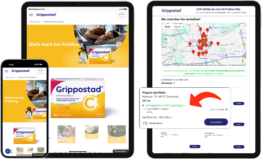 Apotheken mit Webshop erscheinen in der aponow-Apothekensuche automatisch an prominenter Stelle – inklusive Preisen und Verfügbarkeiten!