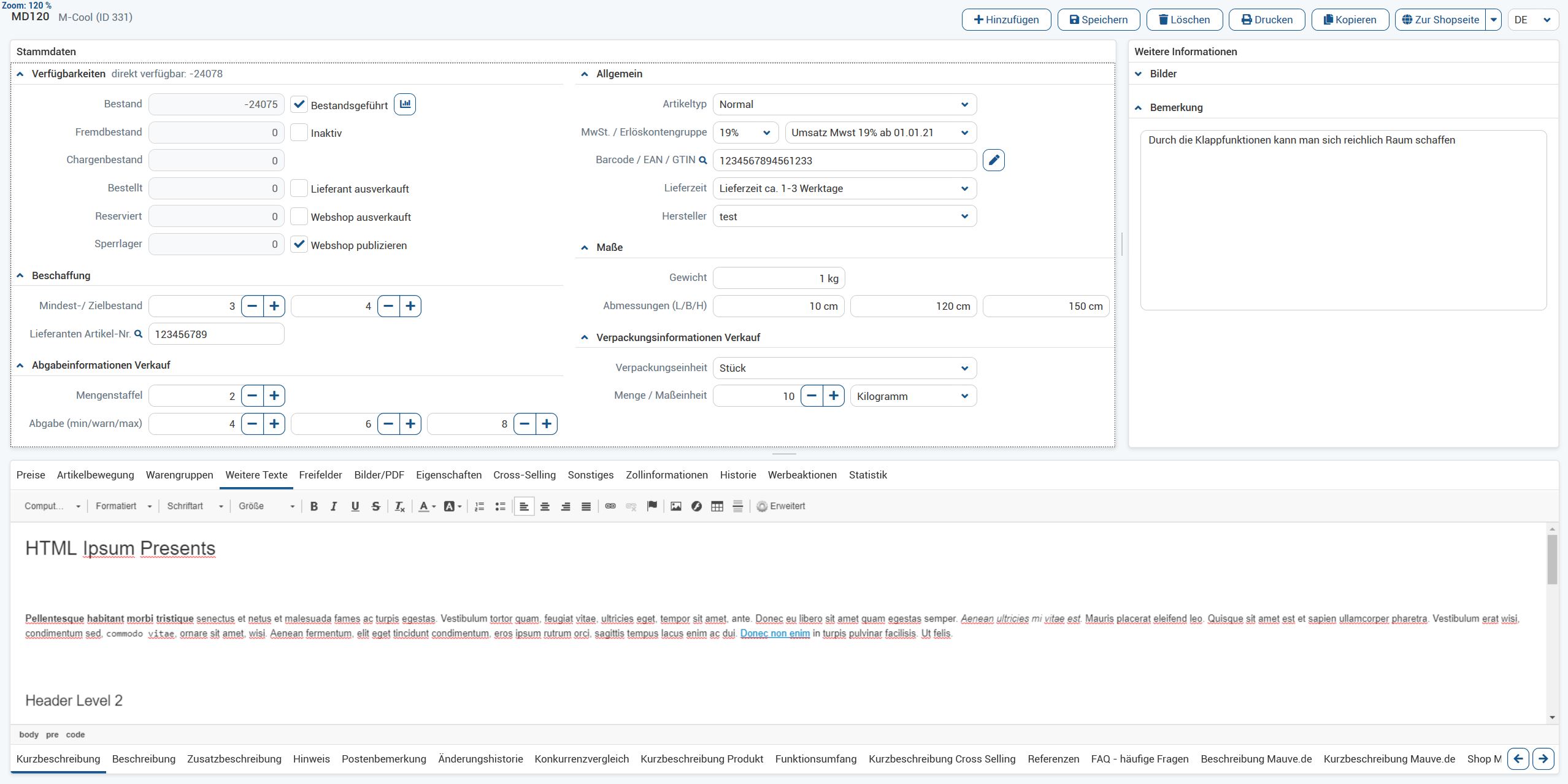 Zudem wird jetzt zwischen Informationen, die man nur lesend wahrnehmen will und Informationen, die häufig geändert werden und somit direkt editierbar sein müssen, unterschieden. Das neue Design unterstützt jetzt viel besser eine höhere Monitorauflösung durch optimierte Darstellung der Inhalte und die zusätzliche Zoom-Funktion (mit Strg + und - oder über Strg und Mausrad) ermöglicht die Skalierung der Inhalte. Anwendern, denen eine größere Monitorfläche zur Verfügung steht, werden jetzt mehr Inhalte angezeigt. Zudem wurde die Joker-Suche erweitert und die Posten (früher F11) wurden in den Reiter Belege (F8) integriert.