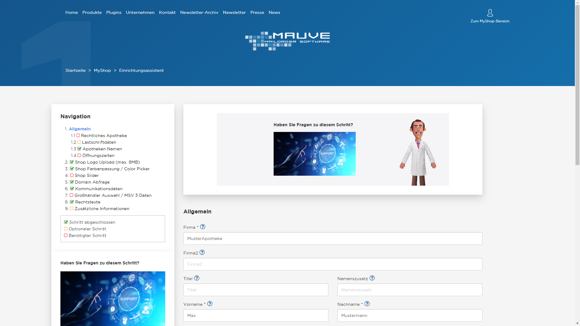 Seit vielen Jahren sorgt die Mauve Software dafür, dass Apotheker mit ihrer Apotheke angemessen im Internet vertreten sind. Mehr als 500 Apotheker haben schon erfolgreich mit Mauve den Schritt in den digitalen Online-Handel gemacht. Mit dem neuen Einrichtungsassistenten wird das Ausrollen eines Mauve ApoShops für jeden Apotheker jetzt zum Kinderspiel. Nach dem Einloggen in den Backoffice-Bereich leitet der Einrichtungsassistent den Apotheker schrittweise durch den Einrichtungsprozess der vorkonfigurierten Shop-Lösung. Am Ende des Einrichtungsprozesses, der keine 20 Minuten dauert, erhält das Einrichtungsteam von Mauve eine Meldung, um die Einrichtung abzuschließen. Der Shop ist damit startklar.